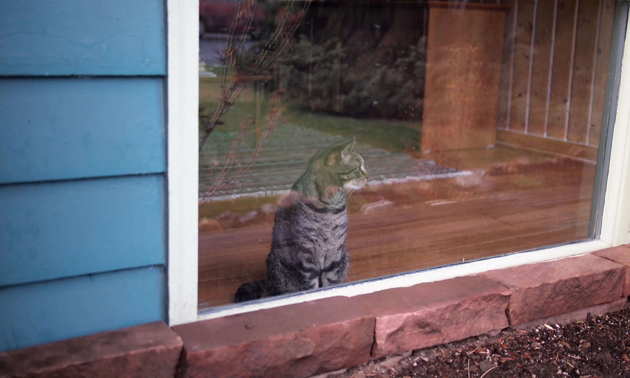 I think it may have stopped raining for a minute (could it be? Is that a patch of blue sky outside the window?) so I must take the cats out for a quick jaunt around the yard, if I want to sleep tonight that is! Then it’s a quick bowl of red lentil soup and, caulk gun in hand, back to work!!